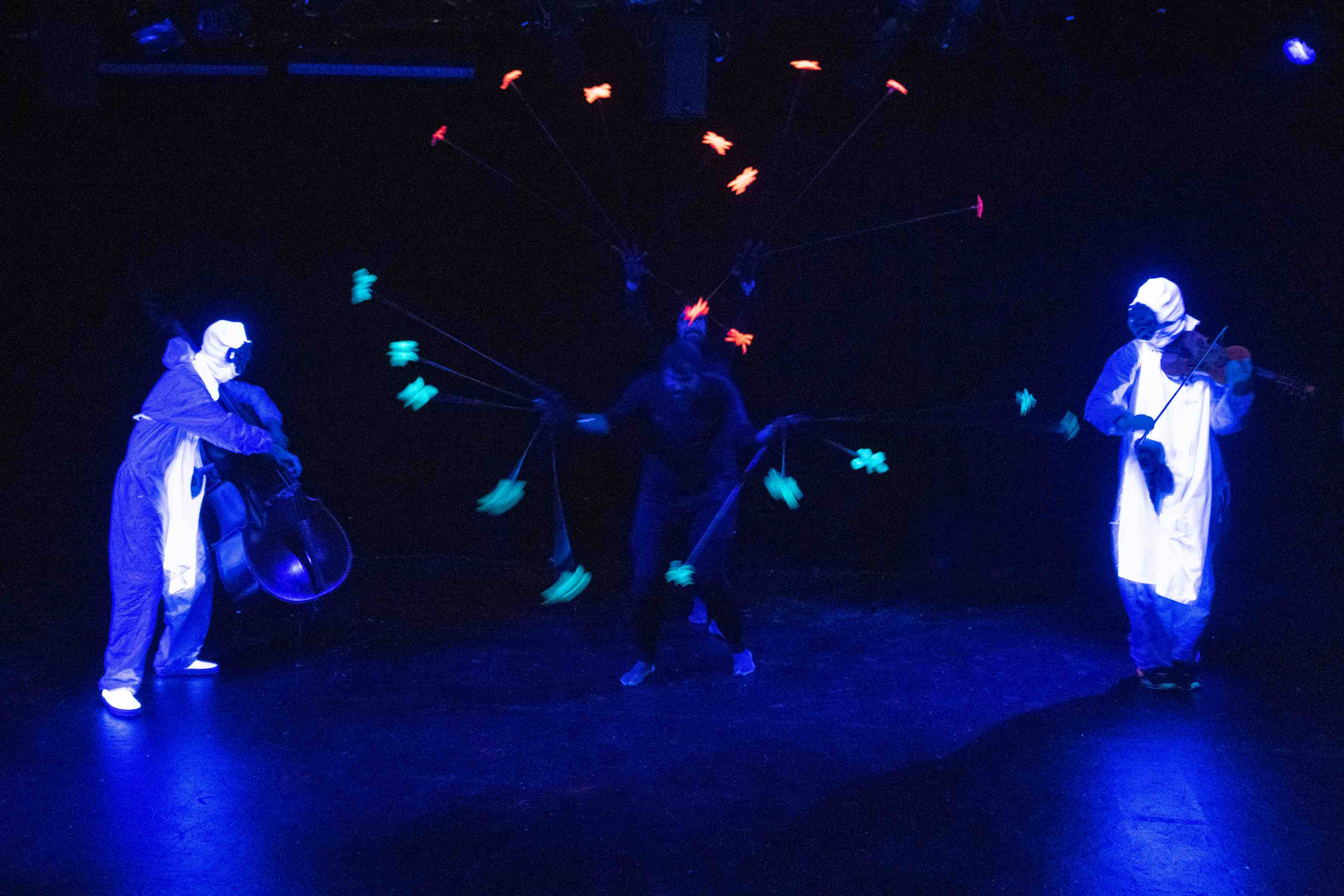 is a theatrical collaboration between the Daxophone Consort and puppeteer duo Poncili Creación. This show was produced by Basil Twist and premiered at HERE Arts Center in March 2023, where its two-week run was entirely sold out. In addition to my role as a performer and co-creator of the show, I was also responsible for the sound design and most electroacoustic elements.